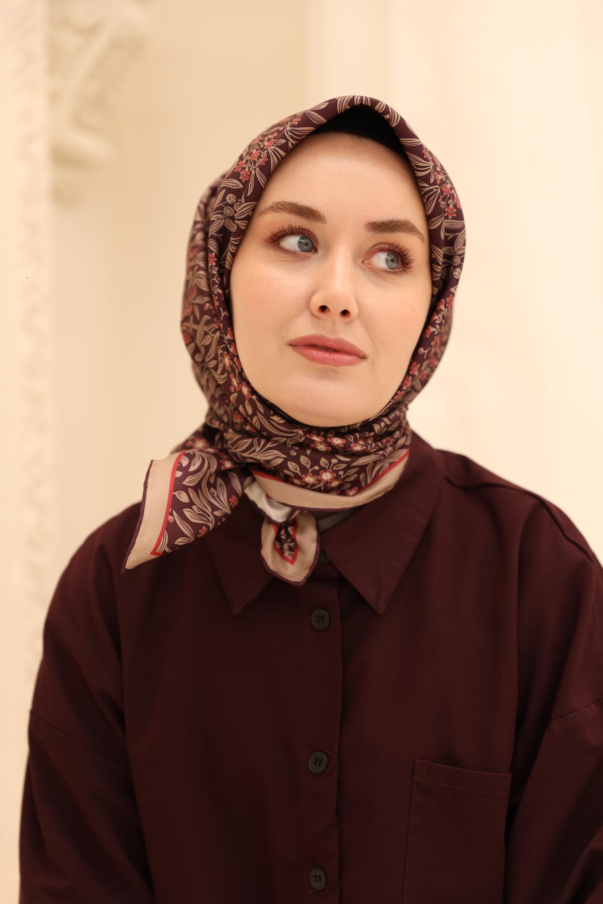 With a rich blend of plum, coral, and taupe shades, this scarf adds a warm and graceful touch to your look. Crafted from 100% twill silk, it offers structure and elegance for daily or formal wear.