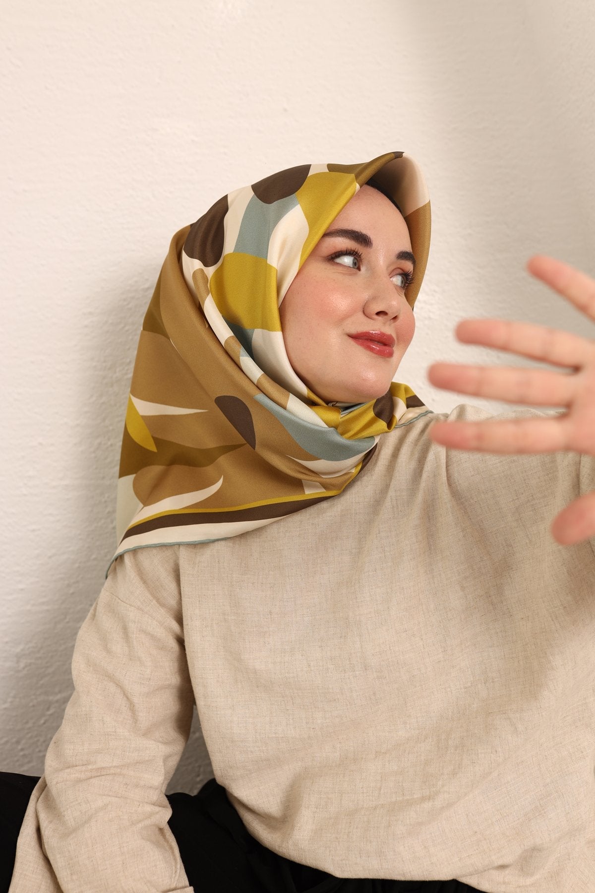 A timeless design from Silk Home, this 100% twill silk scarf showcases a bold floral and foliage pattern. The large-scale motif combines mustard yellow and taupe tones with soft pastels, creating a calm yet striking style.
