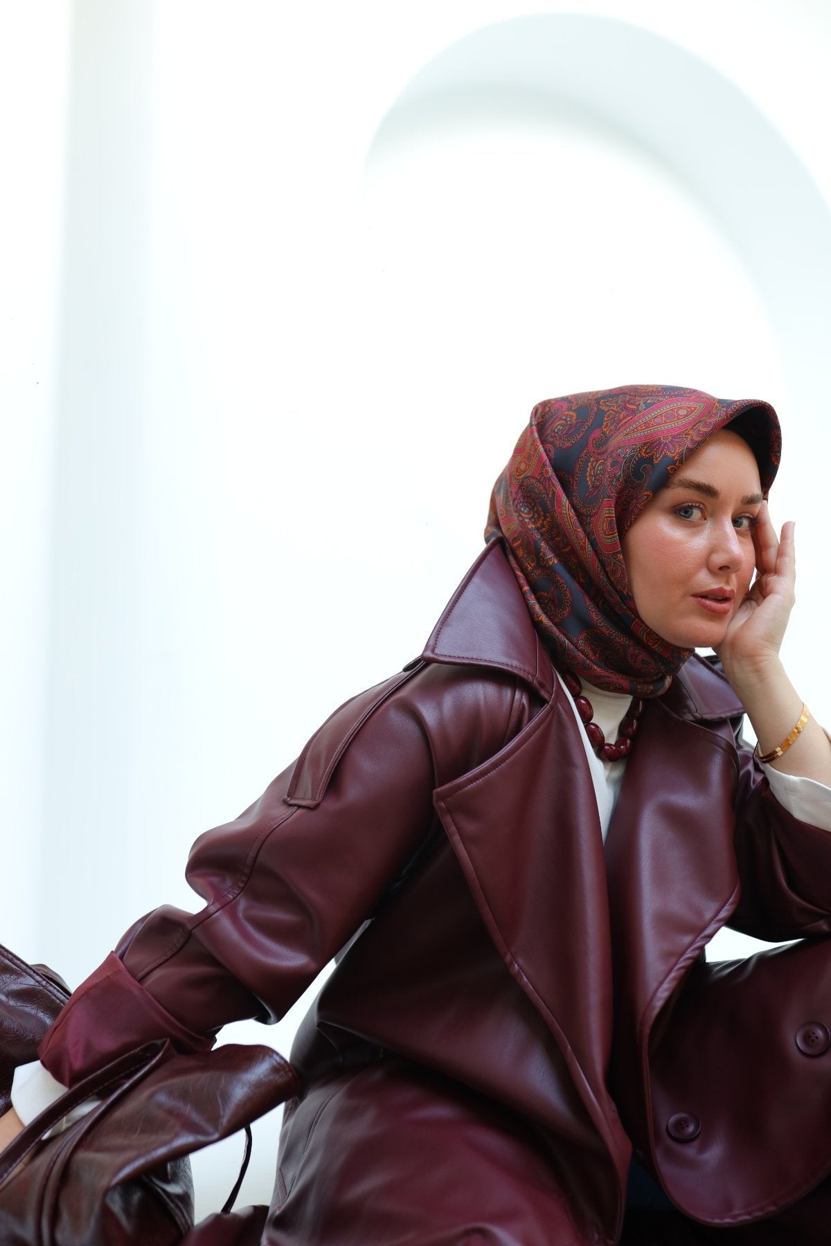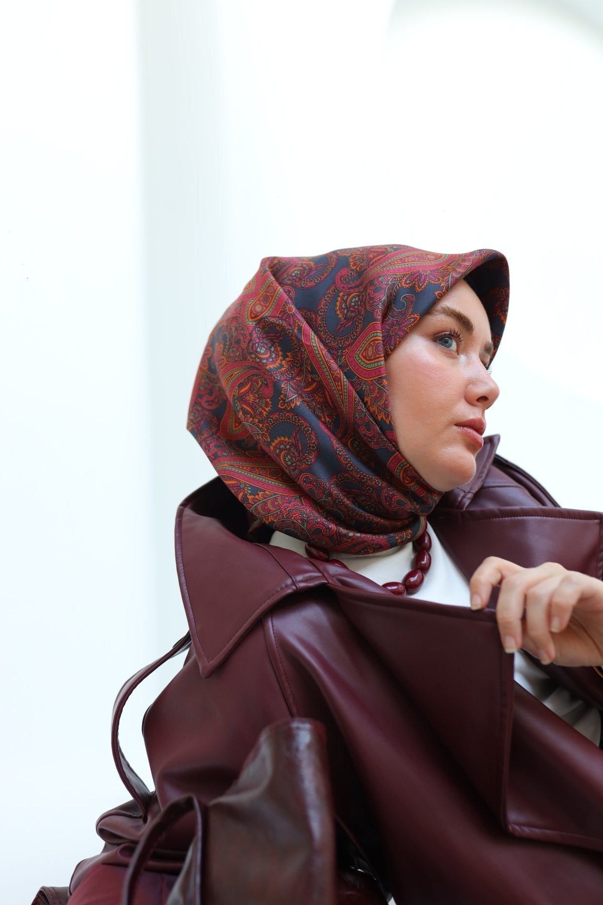 This Silkhome scarf stands out with a refined paisley motif, offering a modern take on a timeless design. The curved ornamental patterns add depth and elegance, while the structured twill silk fabric ensures lasting shape and graceful drape—ideal for both daily wear and sophisticated styling.